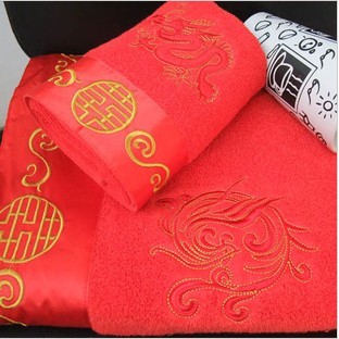 大紅色龍鳳婚禮套巾  規格35*75 成份純棉