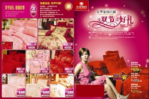大華家紡在中秋節國慶節來(lái)臨之際,推出"慶雙節 送好禮"大型促銷(xiāo)活動(dòng)。大華家紡雙節送禮,超值回饋。